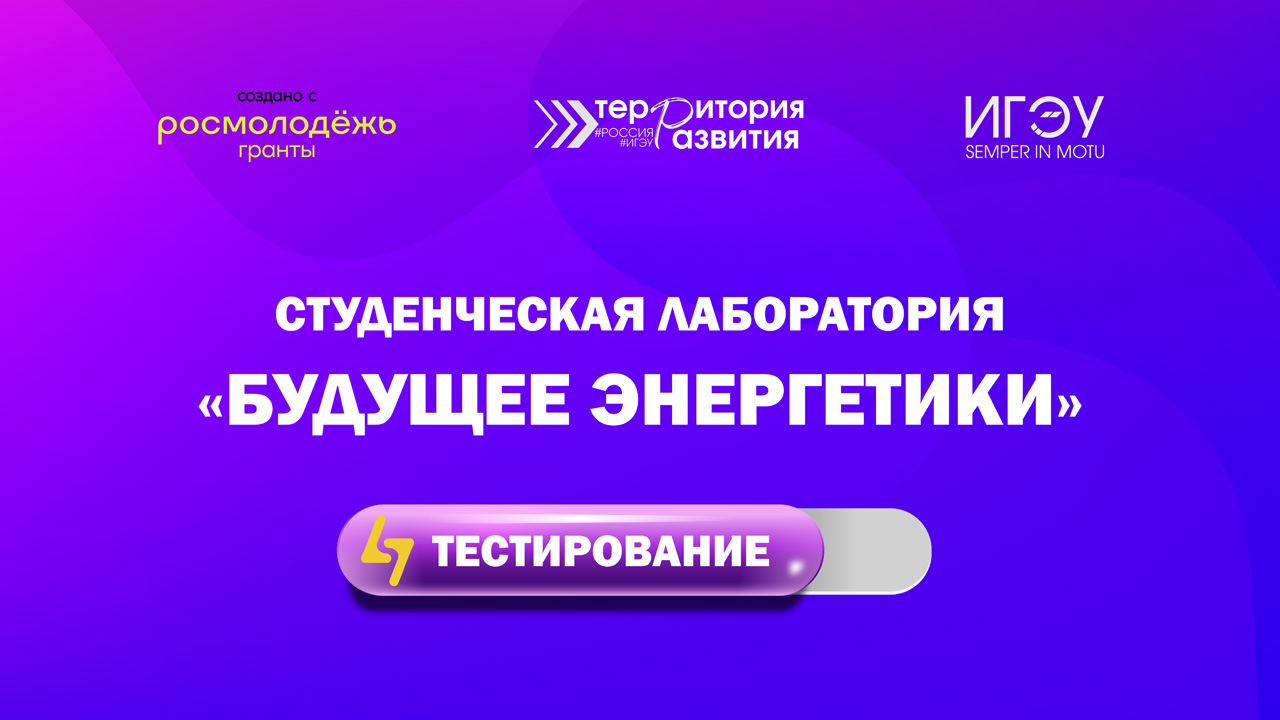 В рамках реализации проектного решения Студенческая лаборатория «Будущее энергетики» (победитель конкурса РОСМОЛОДЁЖЬ.Гранты) открыто входное тестирование для участников мероприятий Лаборатории.