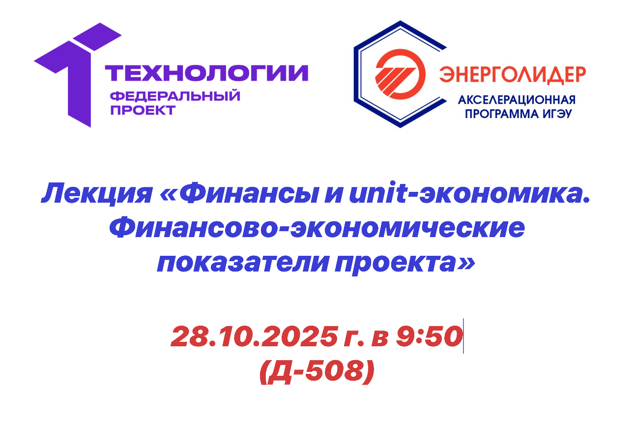 Лекции по технологическому предпринимательству проводятся в рамках Акселерационной программы «ЭнергоЛидер» при поддержке генерального индустриального партнера ИГЭУ - АО «Концерн Росэнергоатом».