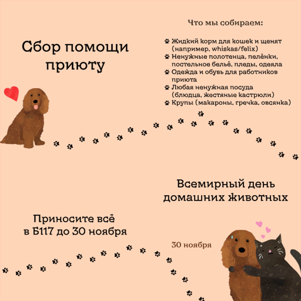 Смотри в карточках в чём нуждается приют больше всего и приходи в студенческий профком, чтобы помочь зверюшкам!