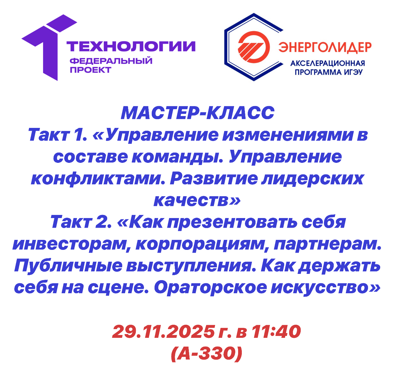 Акселерационная программа ИГЭУ проводится в рамках Федерального проекта «Технологии», являющегося частью Национального проекта «Эффективная и конкурентная экономика», реализуемого при поддержке Министерства науки и высшего образования Российской Федерации.