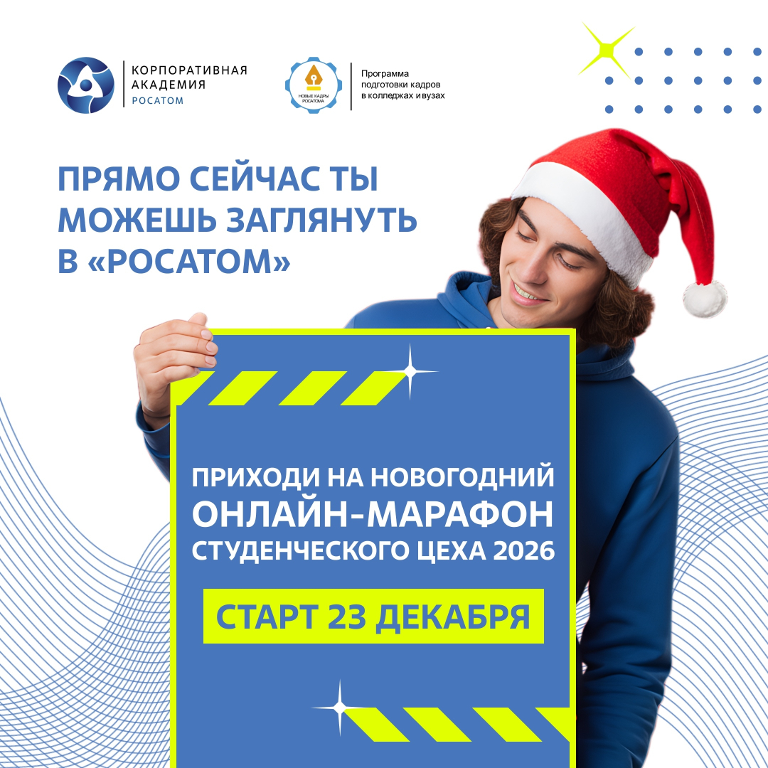 23 декабря 2025 года стартует всероссийский образовательный онлайн-марафон «Студенческий ЦЕХ», организованный АНО «Корпоративная Академия Росатома» в рамках проекта «Рабочие и инженерные кадры для производственно-технологического роста». Мероприятие направлено на развитие практических компетенций будущих специалистов через доступ к записям мастер-классов от экспертов атомной отрасли.