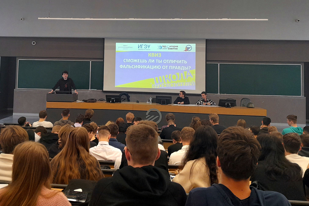 - Для слушателей Школы и всех желающих были проведены два квиза по теме «Сможешь ли ты распознать фальсификацию истории России?» В рамках квизов проверялись: знание истории, умение анализировать историческую и социальную информацию, критическое мышление ребят.