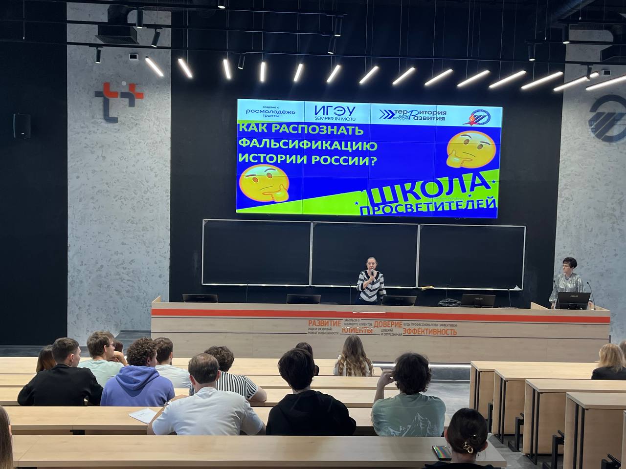 - 28 ноября состоится просветительская акция «Помним прошлое ради будущего». В рамках акции наиболее активные слушатели Школы просветителей подготовят свои авторские доклады на тему фальсификации отдельных периодов российской истории и выступят с ними перед студентами первого курса.