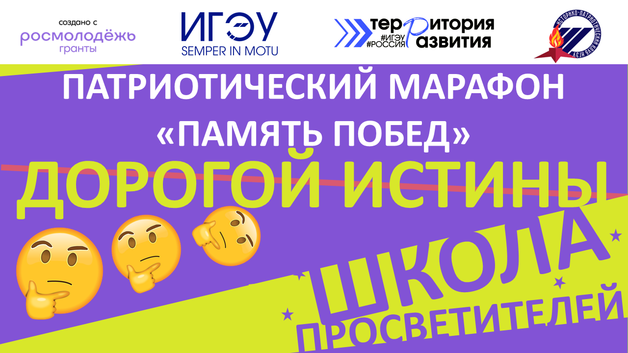 Проектное решение Патриотический марафон «Память побед» реализуется при грантовой поддержке Федерального агентства по делам молодёжи (Росмолодёжь).