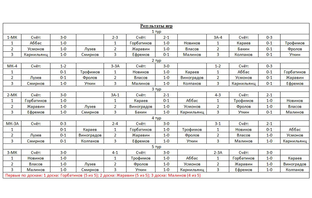 - 1 доска – Николай Горбатиков (2-ЭЭ5, ЭЭФ)