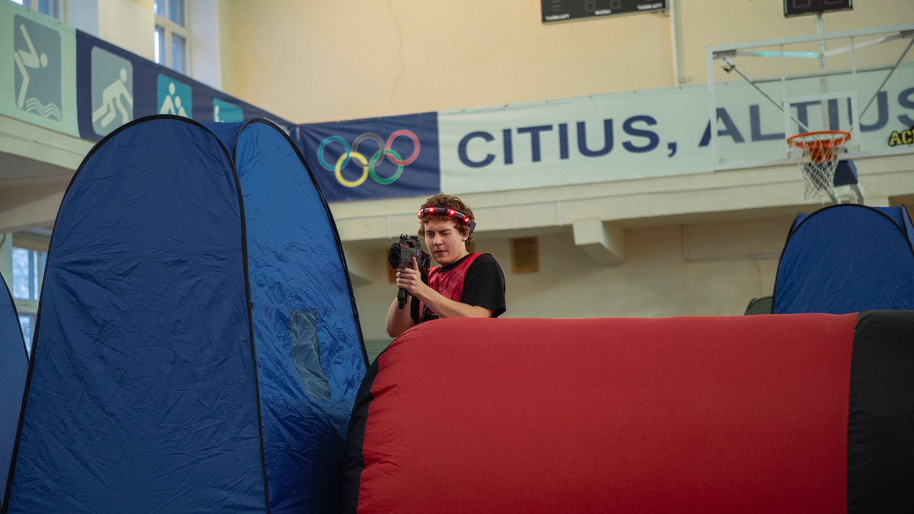 Одним из самых увлекательных мероприятий стало военно-тактическое соревнование по лазертагу «Потомки победителей».